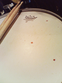 久々にこのリファレンスのスネア出したら、ヘッドが血だらけでした。。。